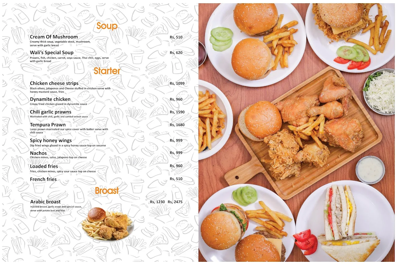 Welcome to Wali's Restaurant Gojra, your ultimate destination for the best food in Gojra! Whether you are craving crispy zinger burgers, freshly baked thick-crust pizzas, or mouth-watering traditional BBQ and karahi, we serve top-tier meals using the freshest ingredients. Known as the top family restaurant in Gojra, Wali's offers a cozy, air-conditioned ambiance, lightning-fast service, and incredibly budget-friendly deals. Satisfy your fast food and desi cravings all under one roof! Skip the wait for a table at the city's favorite eatery. Reserve your spot at Wali's Restaurant Gojra today directly through Reservekaru for an unforgettable dining experience with your loved ones.